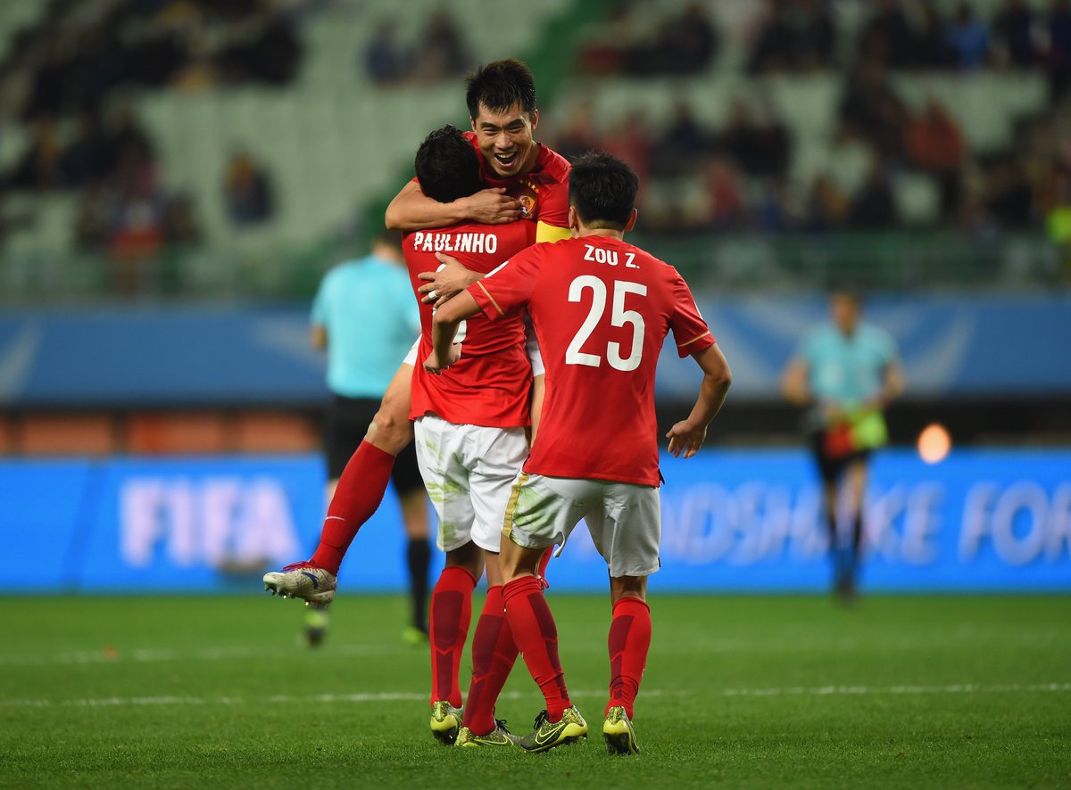 Un cabezazo en el último minuto del brasileño Paulinho dio al Guangzhou Evergrande una resonante victoria por 2-1 ante el CF América y jugará el jueves 17 de diciembre en Yokohama las semifinales de la Copa Mundial de Clubes de la FIFA Japón 2015 ante el FC Barcelona.