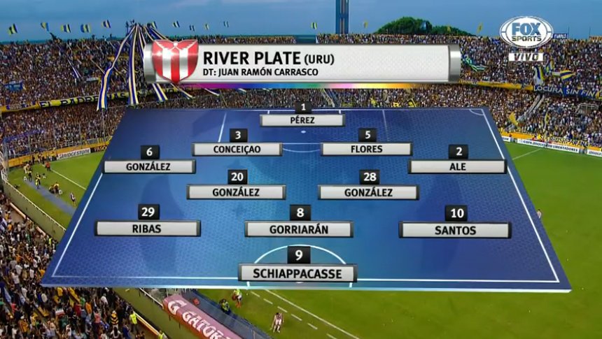 Ya en el segundo tiempo, a los 10 minutos, y después de una asistencia exiquisita de Lo Celso, Germán Herrera enganchó en el área y la clavó en un ángulo para que el equipo de Coudet amplie la ventaja contra el conjunto uruguayo. Y la espera fue corta para el tercero de Rosario Central: cuatro minutos despúes del segundo, otra vez el 9 Canalla facturó para el 3-0.